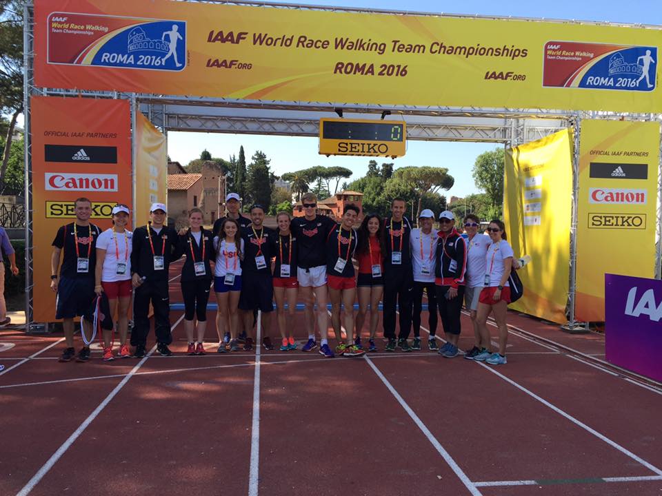 I’ve worked many distance events in the past. So I am used to being on my feet for the entirety of these long races. For race walk, it was great to see the athletes at multiple points of the race without having to move too often. What made this race so memorable is that this race started on a road near the foot of the Roman Colosseum and looped passed many of the Roman ruins. Only the end of the race finished inside of the track stadium. So it was absolutely a fun way to “see” Rome while working with USATF and the race walk athletes.