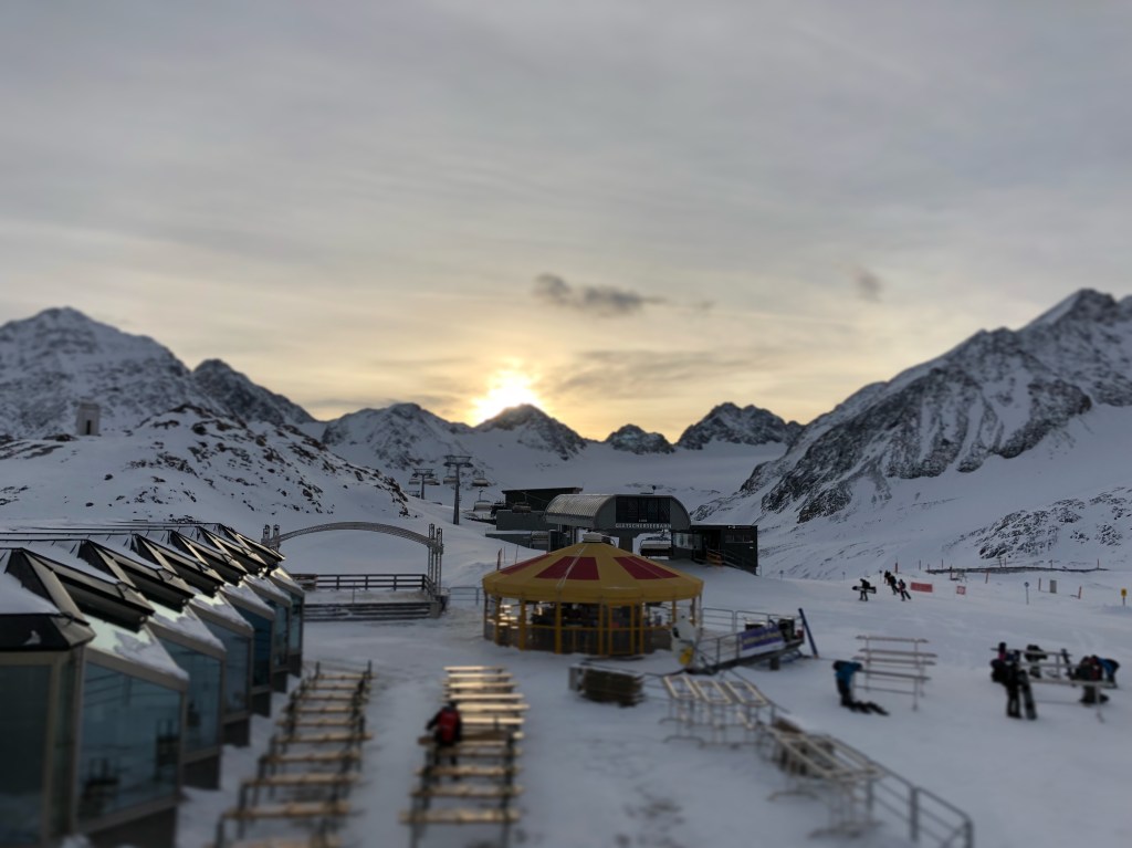The Pitztal glacier sits at 3440 meters (approx 11200 feet) so it usually has snow year round. Being so high, the views from the top are surreal, especially during sunrise. But it gets really cold when in the shadows!