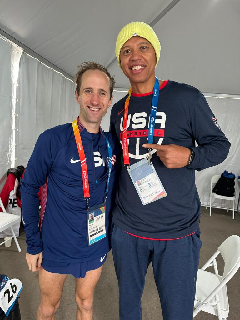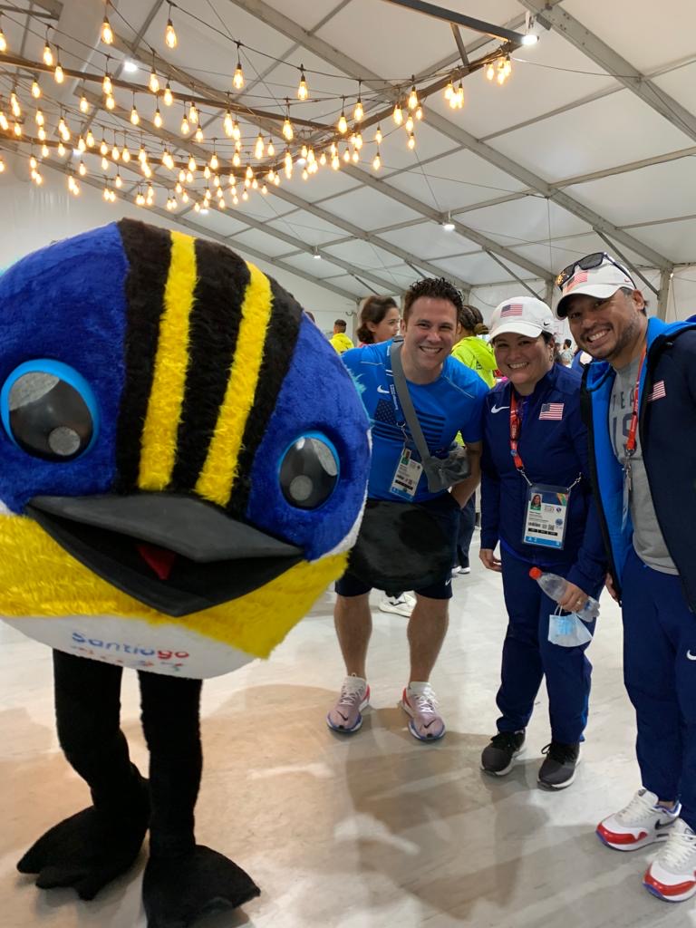 On my off times, I watched USA Racquetball compete as well as the 3X3 team practice. It was fun traveling around Santiago and getting to know both teams. Racquetball was not an Olympic sport, so this was one of their biggest events. 3×3 Basketball was just added to the Olympic program at the Tokyo games and I am happy to say the USA Mens team qualified for Paris for the first time recently! I got to know their coach as we clicked right away. He recently had taken up running so we conversed a lot about how to build up his mileage etc. He was such a big fan that he even literally ran from the Athlete’s Village to the marathon course and back to cheer on our lone marathoner! That was amazing!