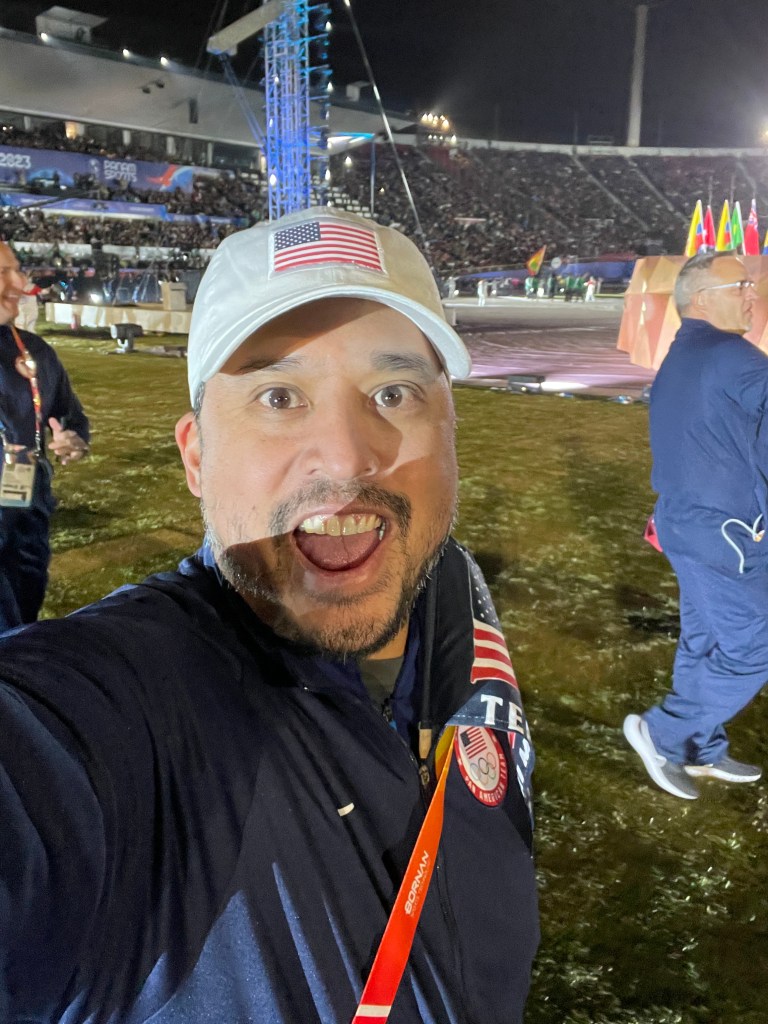Because I only had one marathon athlete to tend to, I spent a lot of time hanging out with the USA Racquetball team and their athletic trainer, who happened to be a friend of mine. As it turns out, his staff shared an apartment with the staff of the USA Mens Basketball 3X3 team. So consequently I hung out with them a lot as well. I even walked the Opening Ceremonies with both teams! What’s crazy was I was the lone representative for the USA Track and Field Team at the Opening Ceremonies! Historically we were the largest team for Team USA at any given Games, yet I was only a party of 1 (the marathoner stayed back at the Village to spare his legs as his event was in a couple of days).
